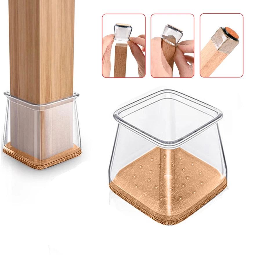 Ele envolve os pés das cadeiras com silicone resistente e feltro integrado, garantindo movimentos suaves, silenciosos e sem danos ao piso.